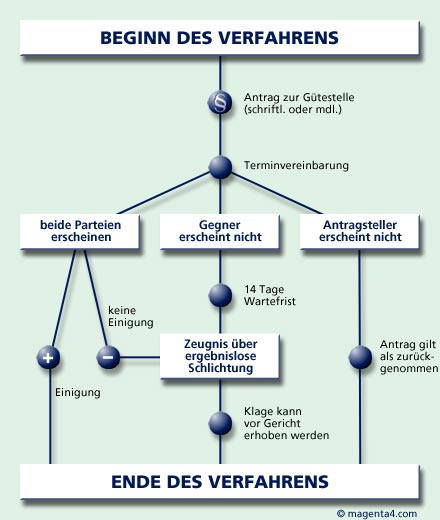 Es muss ein Antrag an eine Gütestelle gestellt und dann